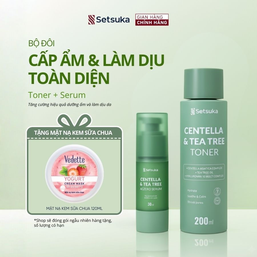 Bộ Đôi Setsuka Toner & Serum là bước dưỡng chuyên sâu không thể thiếu, giúp tối ưu hóa khả năng cấp ẩm, làm dịu, và phục hồi làn da bị tổn thương do mụn hoặc nhạy cảm.