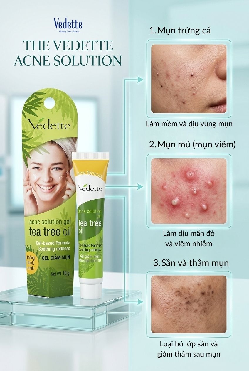 Gel Kháng Khuẩn Trị Mụn Tinh Chất Tràm Trà Vedette 18g