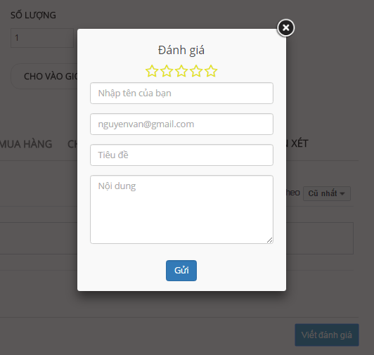 Bước 4: Viết đánh giá, cảm nhận của bạn đối với sản phẩm. Sử dụng Email của bạn để gửi đánh giá. Lưu ý Email này phải trùng với Email bạn sử dụng để mua hàng hoặc trùng với Email mà bạn đã đăng ký tài khoản trước đó (nếu có).